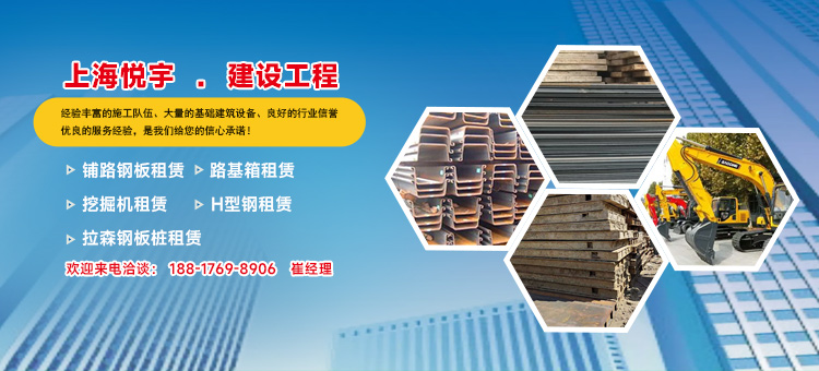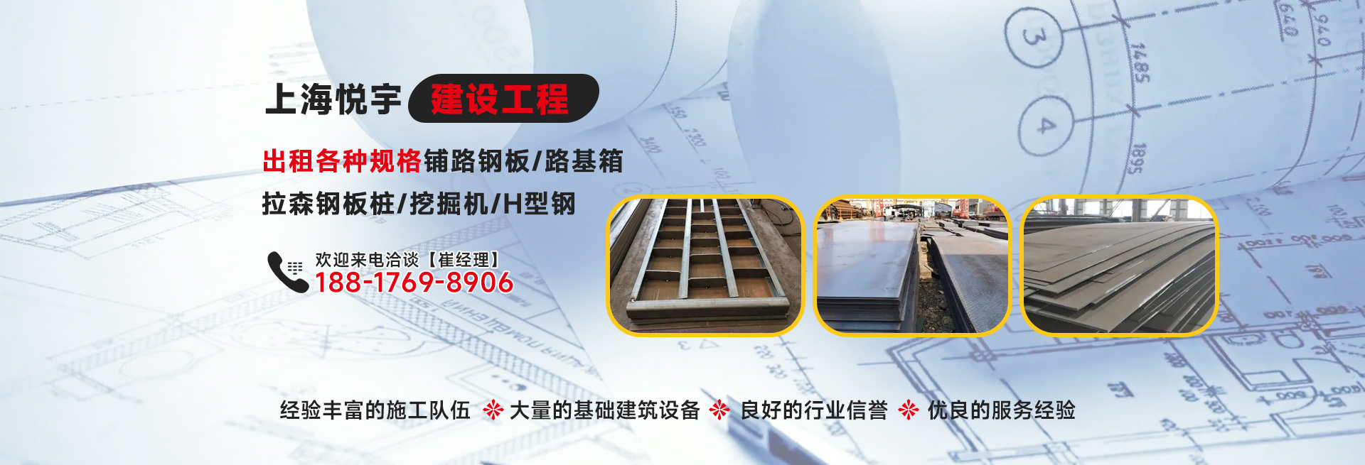 上海悦宇建设工程有限公司从事建筑设备租赁、土方工程等基础设施建筑业务。专业提供钢板租赁、路基箱租赁、拉森钢板桩租赁、H型钢租赁等大中小建筑工程基础建设业务。